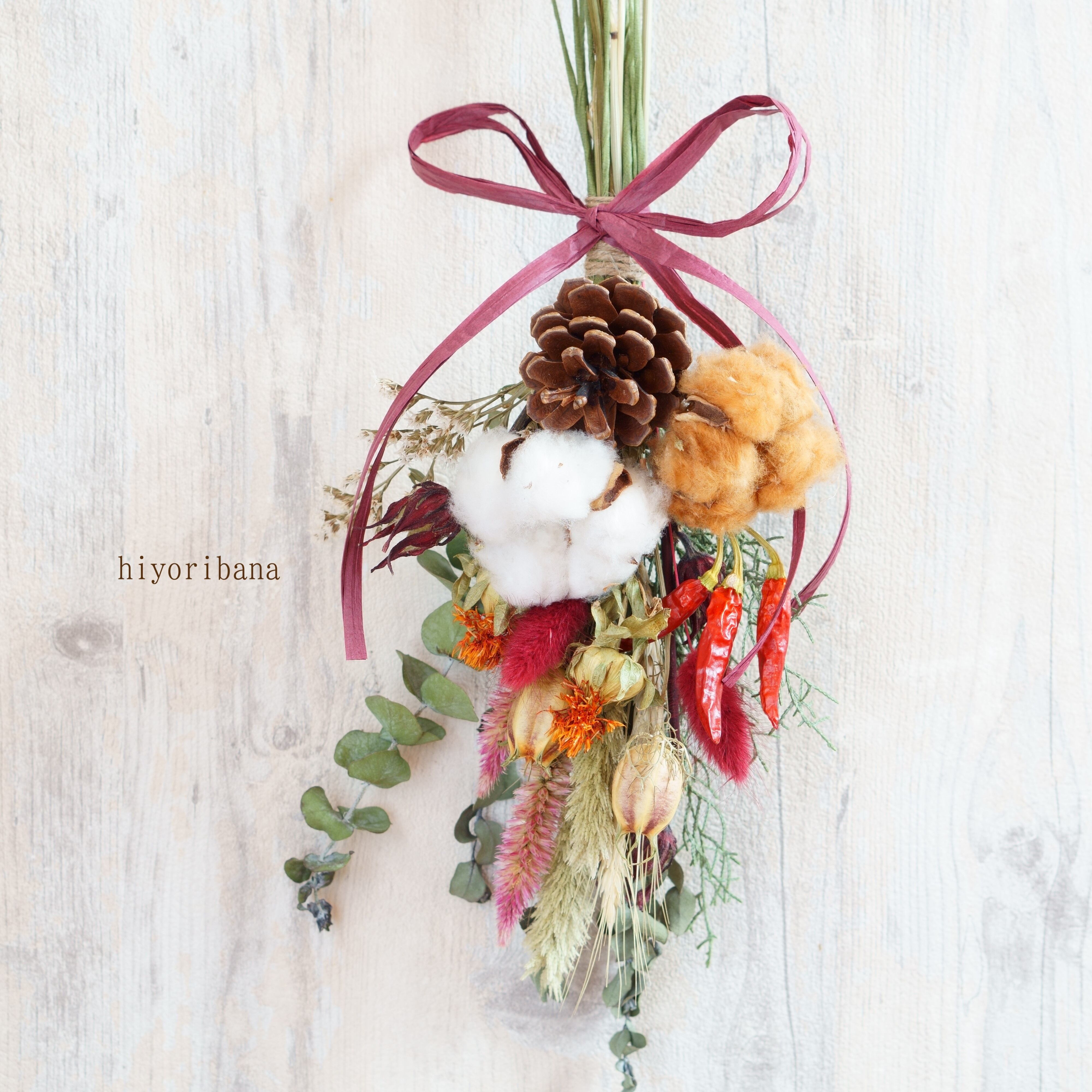 この冬をずっと一緒に過ごしていただきたいという想いから、長く飾れるドライフラワーのお飾りスワッグをつくりました。