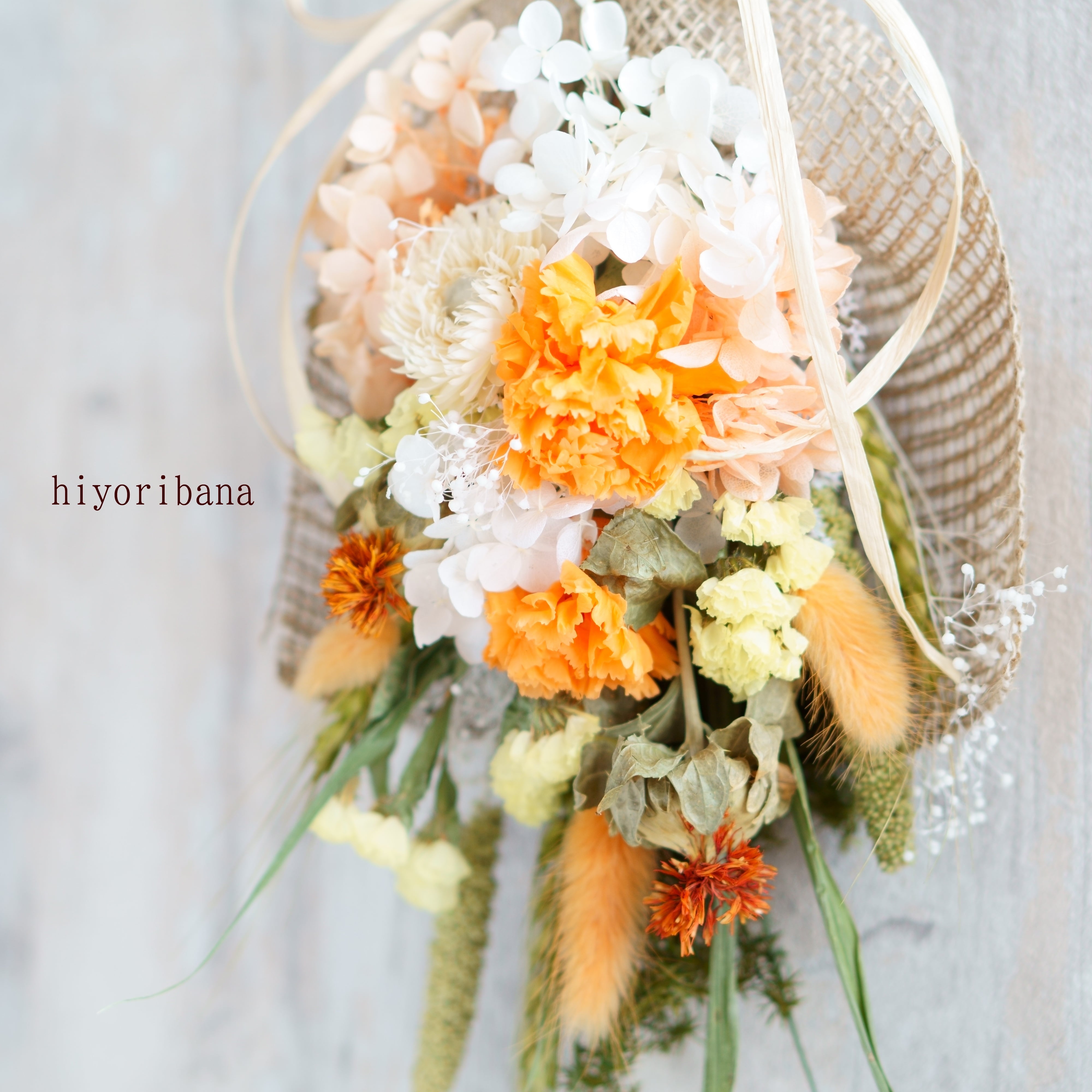 明るく元気なビタミンカラーでまとめたスワッグ。